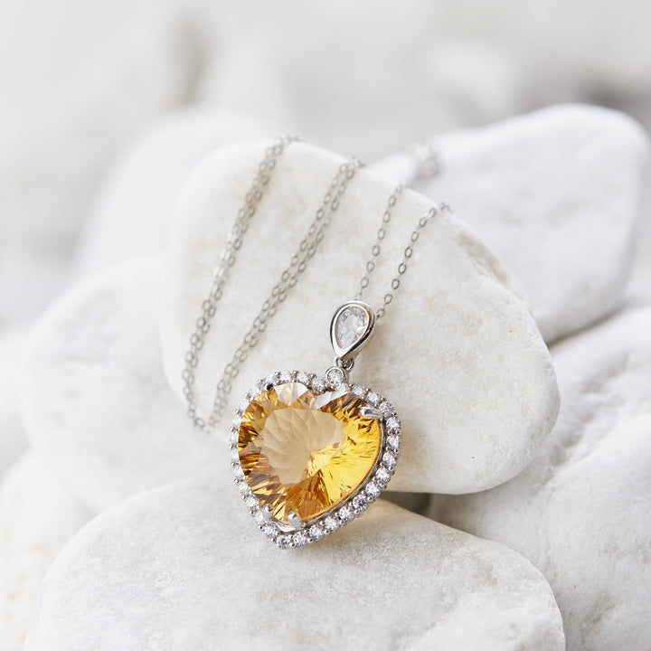 Deluxe Natural Heart Shaped Citrine Crystal Pendant