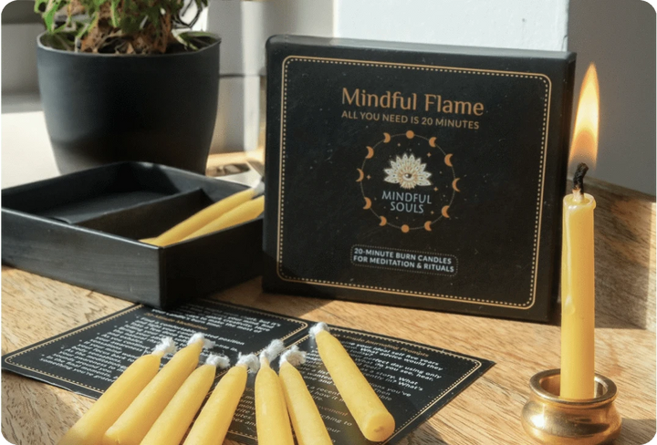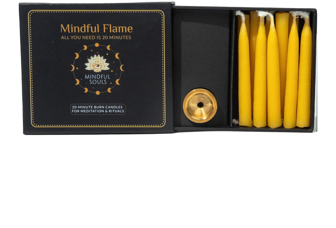 Light the Mindful Flame Meditation Candle with purpose. As the flame comes to life, silently declare: "I create a sacred space for transformation."