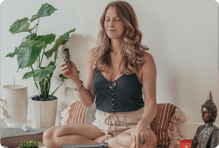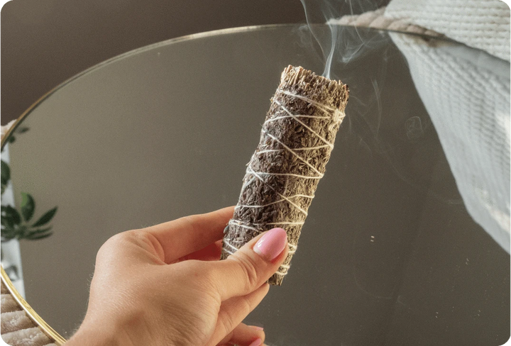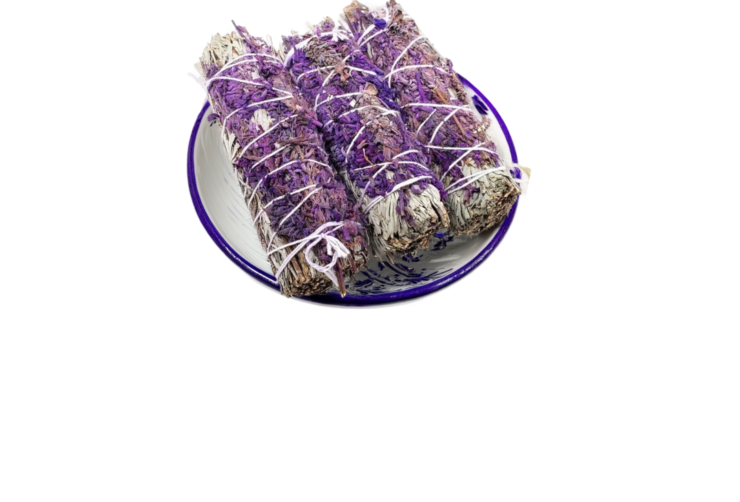 Wave the Calming Blue Sage & Lavender Smudge Stick in clockwise circles around your body. Visualize stagnant energy dissolving as the smoke touches it.