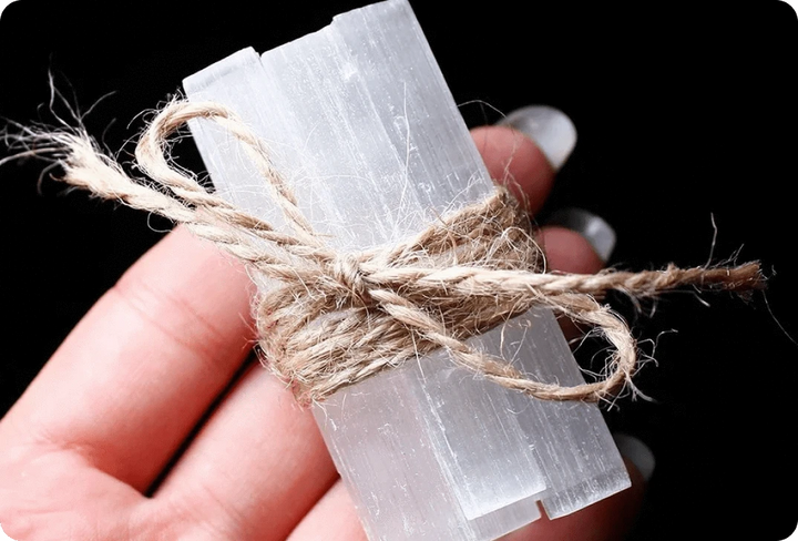 Trace the outline of your body from head to toe with the Selenite Stick, keeping it 2-3 inches away from your physical form to clear your aura of any lingering negativity.