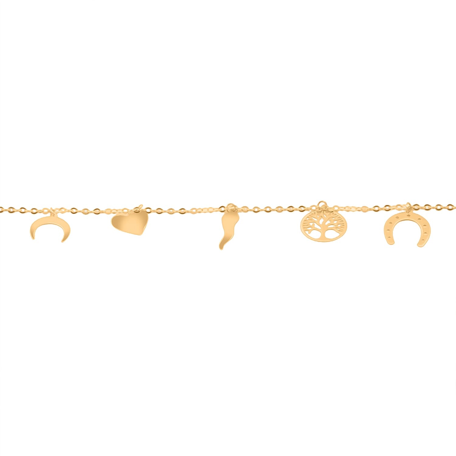 Adorn your wrist with a golden touch of positivity and meaning. This 10K Yellow Gold Lucky Charms Chain Bracelet blends timeless elegance with the protective power of ancient symbols — helping you stay grounded, lucky, and surrounded by good energy.