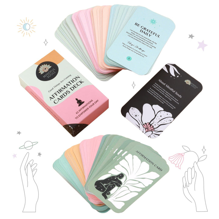 Each card is printed on durable, premium cardstock, ensuring long-lasting use and a luxurious feel. - 62 Thoughtful Affirmations