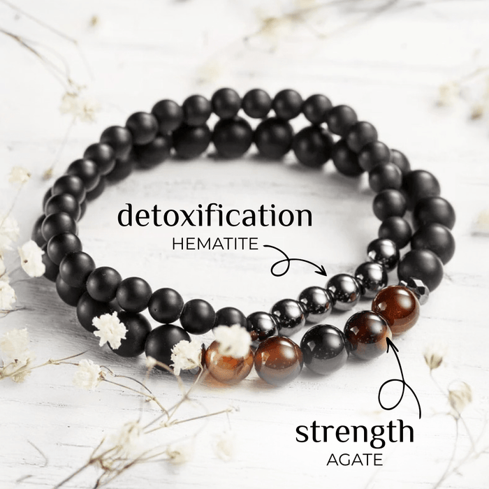 Gorgeous masculineĀ bracelets feature black polished hematiteĀ and natural agate stones in brown tones. It wrapsĀ easily around your wrist, gives youĀ a trendy look, and shields againstĀ negative vibes!Ā