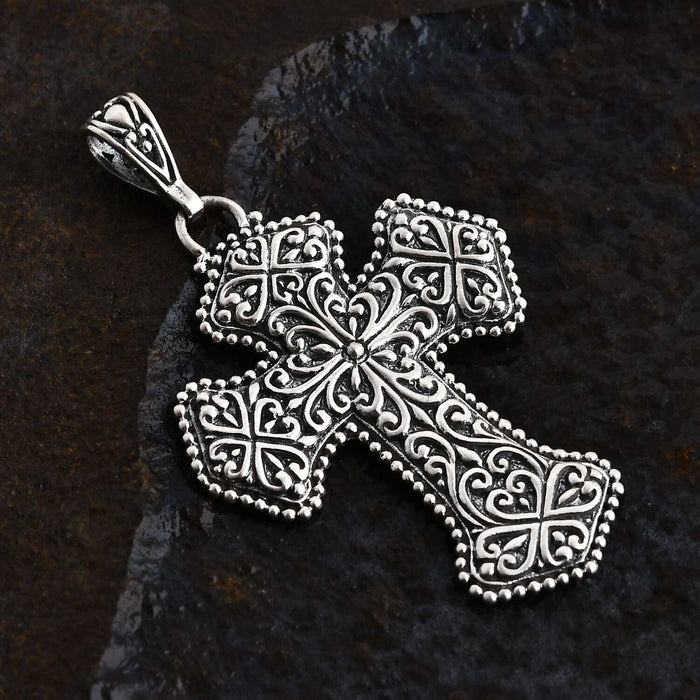 Discover the ancient symbol of protection with the Bali Legacy Sterling Silver Hamsa Pendant. Weighing 5.88 grams, this pendant is beautifully crafted in sterling silver, featuring a Hamsa design, known for its ability to protect the wearer from negative energy and bring blessings of strength and guidance. Available in variations of cross or dragon designs, each shape adds a unique layer of meaning to the pendant.