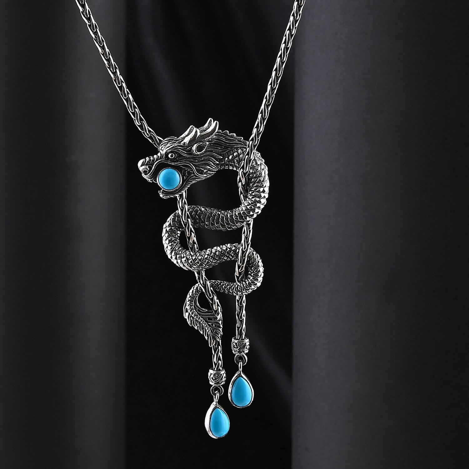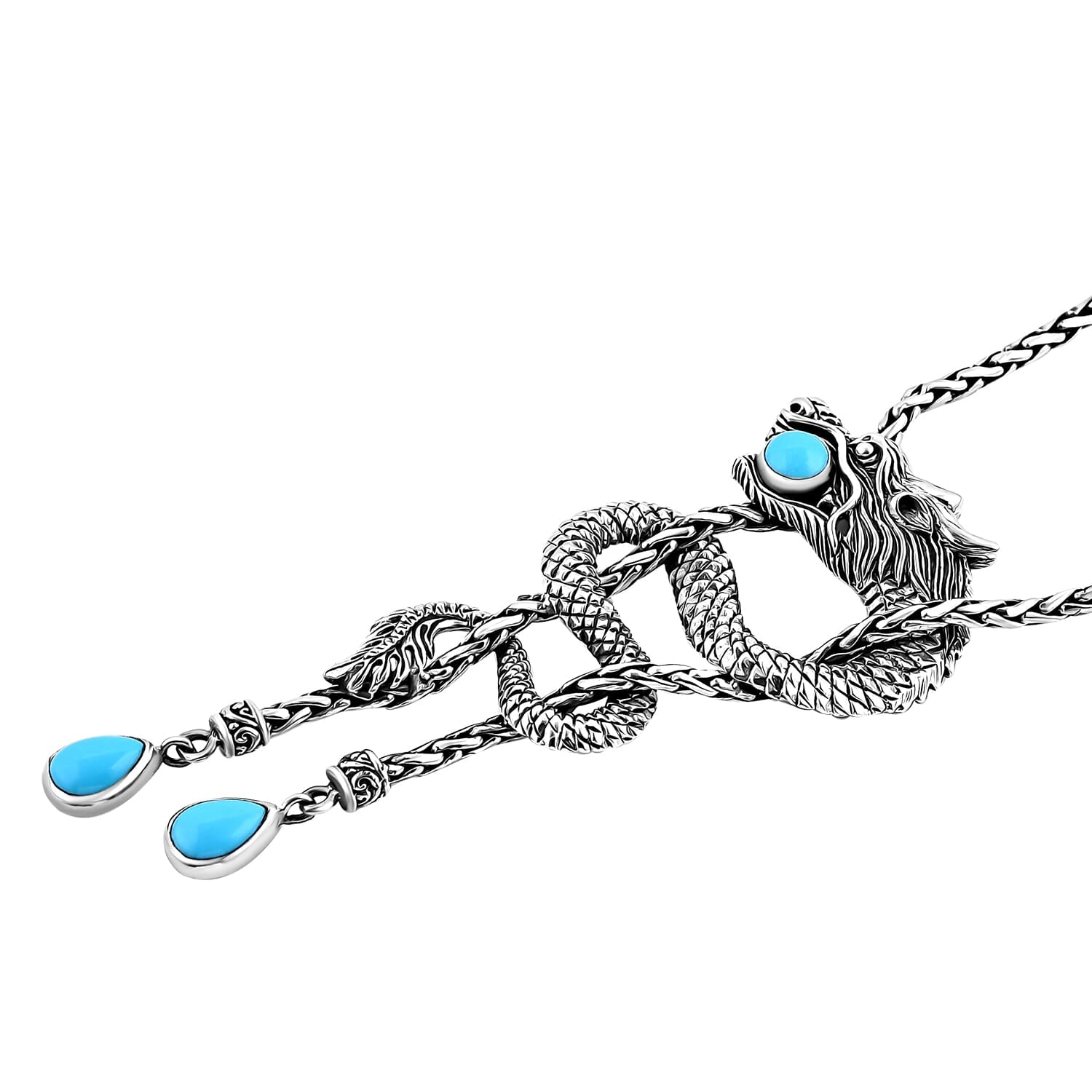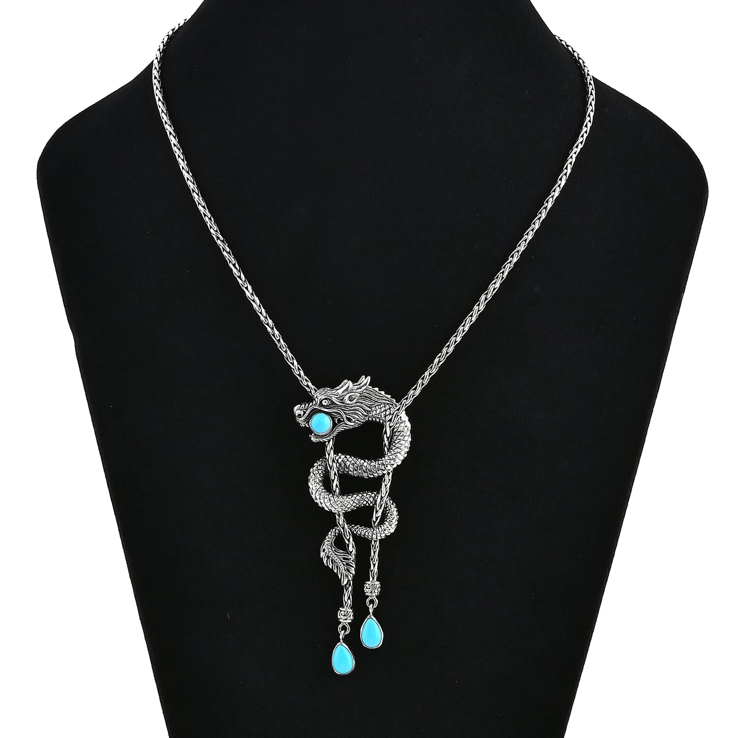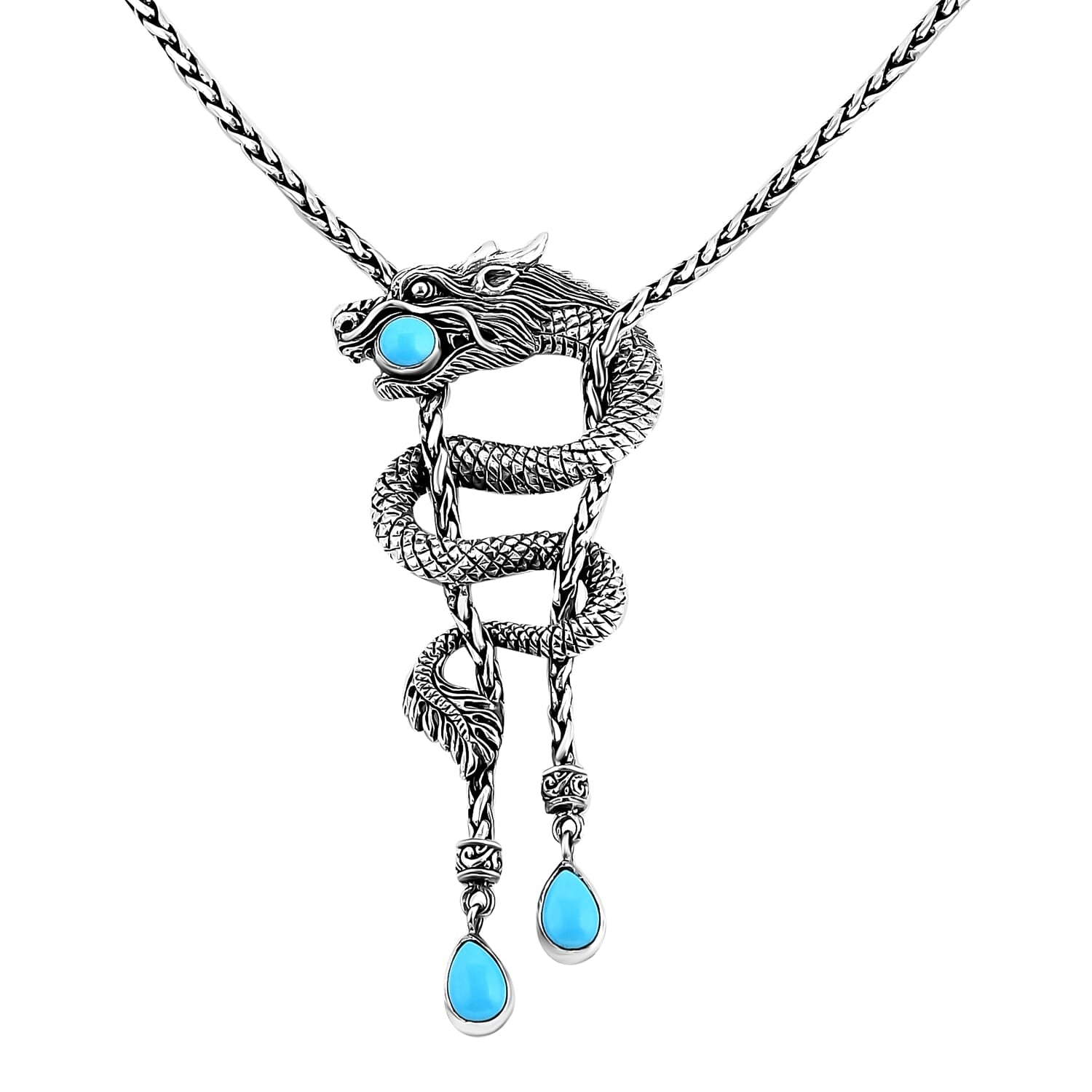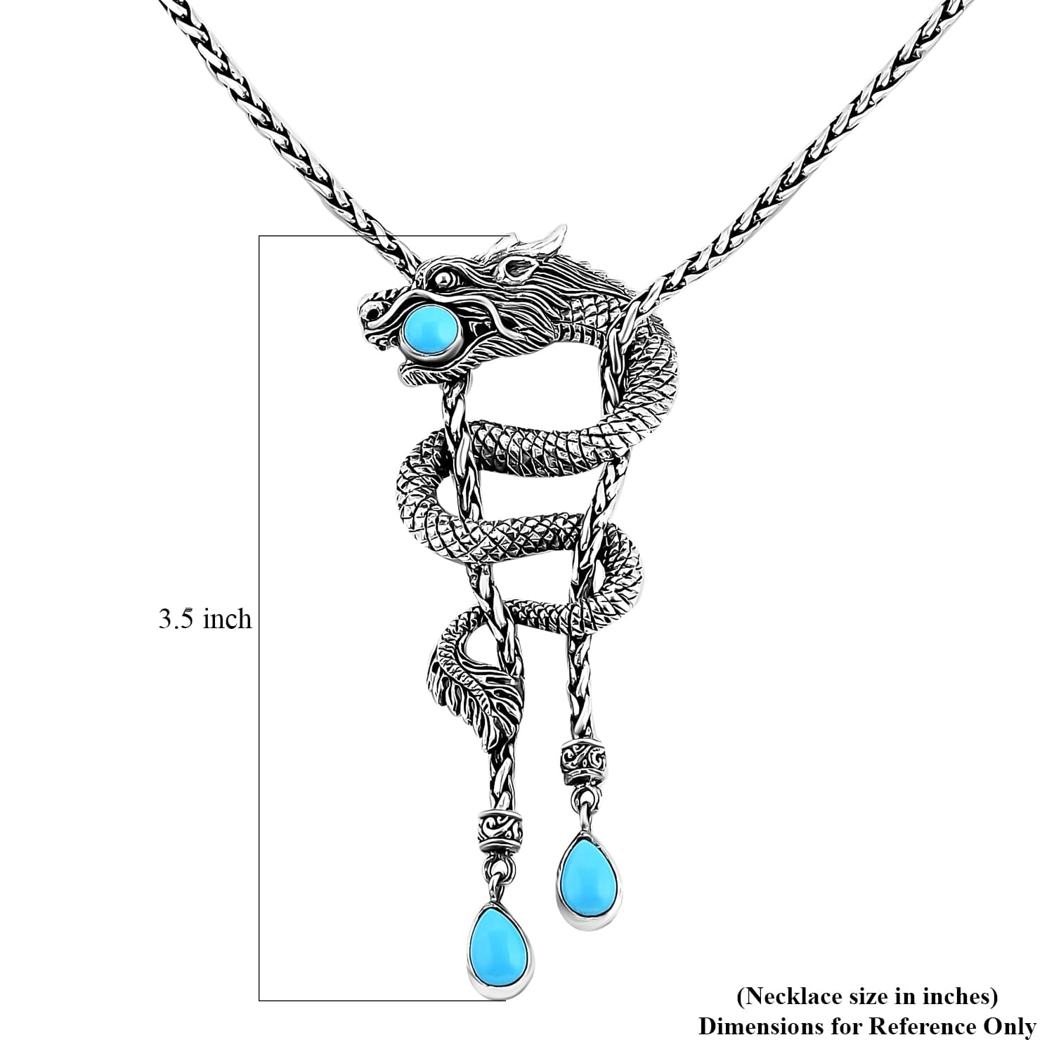 The dragon, known in many cultures as a symbol of power, courage, and wisdom, is sculpted with intricate Balinese silverwork, honoring centuries of handcrafted tradition. At its center sits a Sleeping Beauty Turquoise gemstone, prized for its pure, sky-blue hue. This gemstone is often associated with mental clarity, confidence, and protection, making it the perfect companion for those who embrace life’s challenges head-on.
