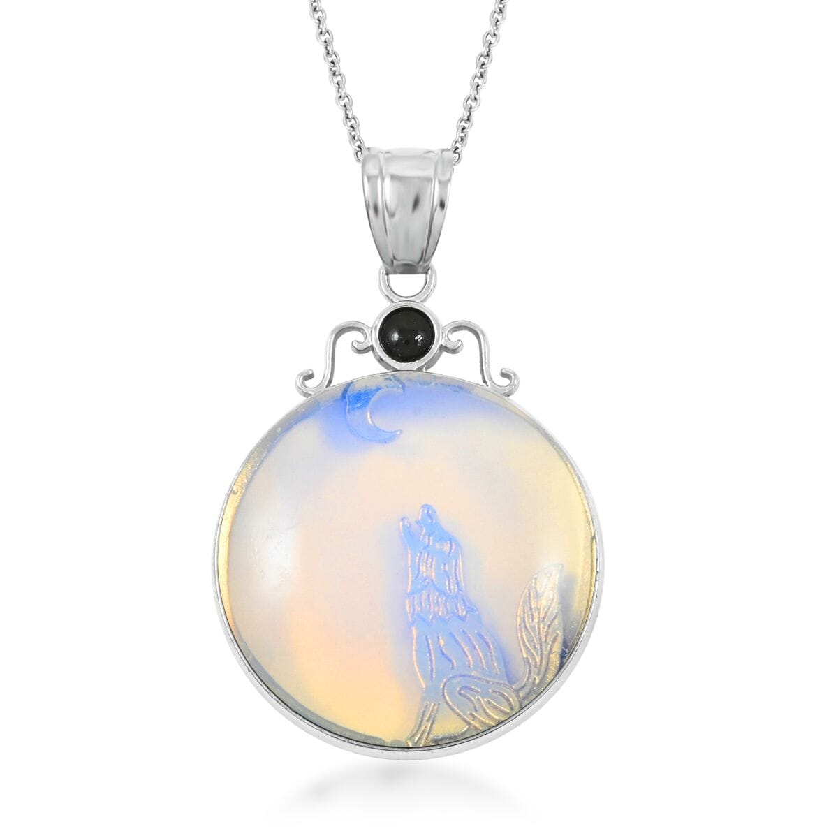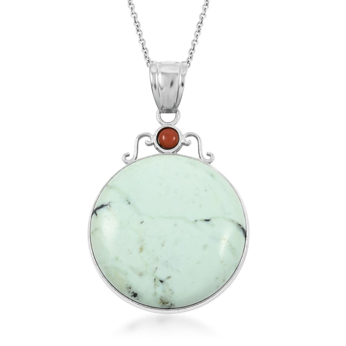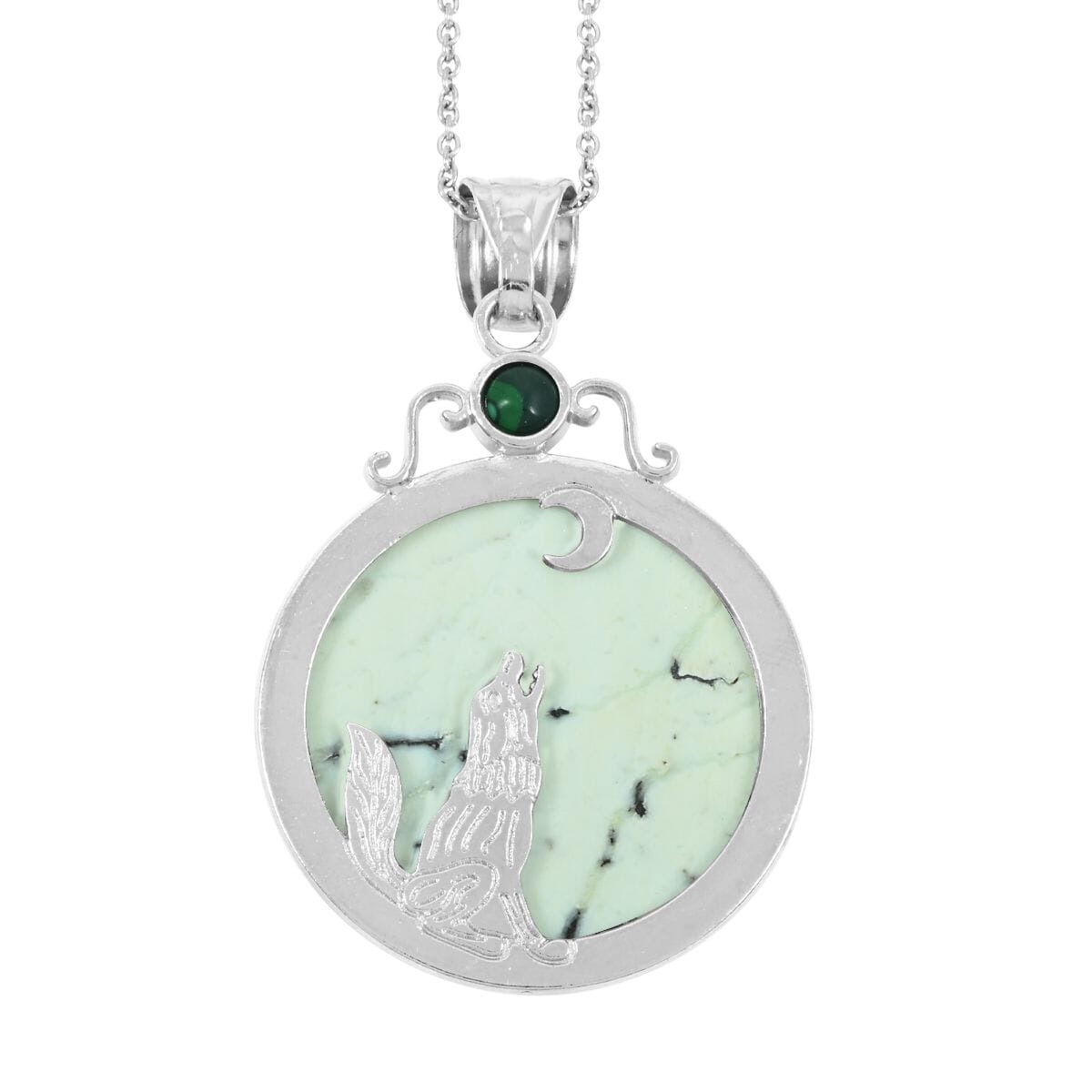 Material: Silvertone setting with Stainless Steel chain