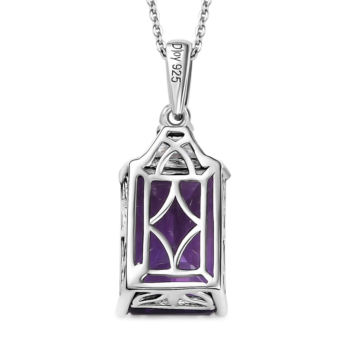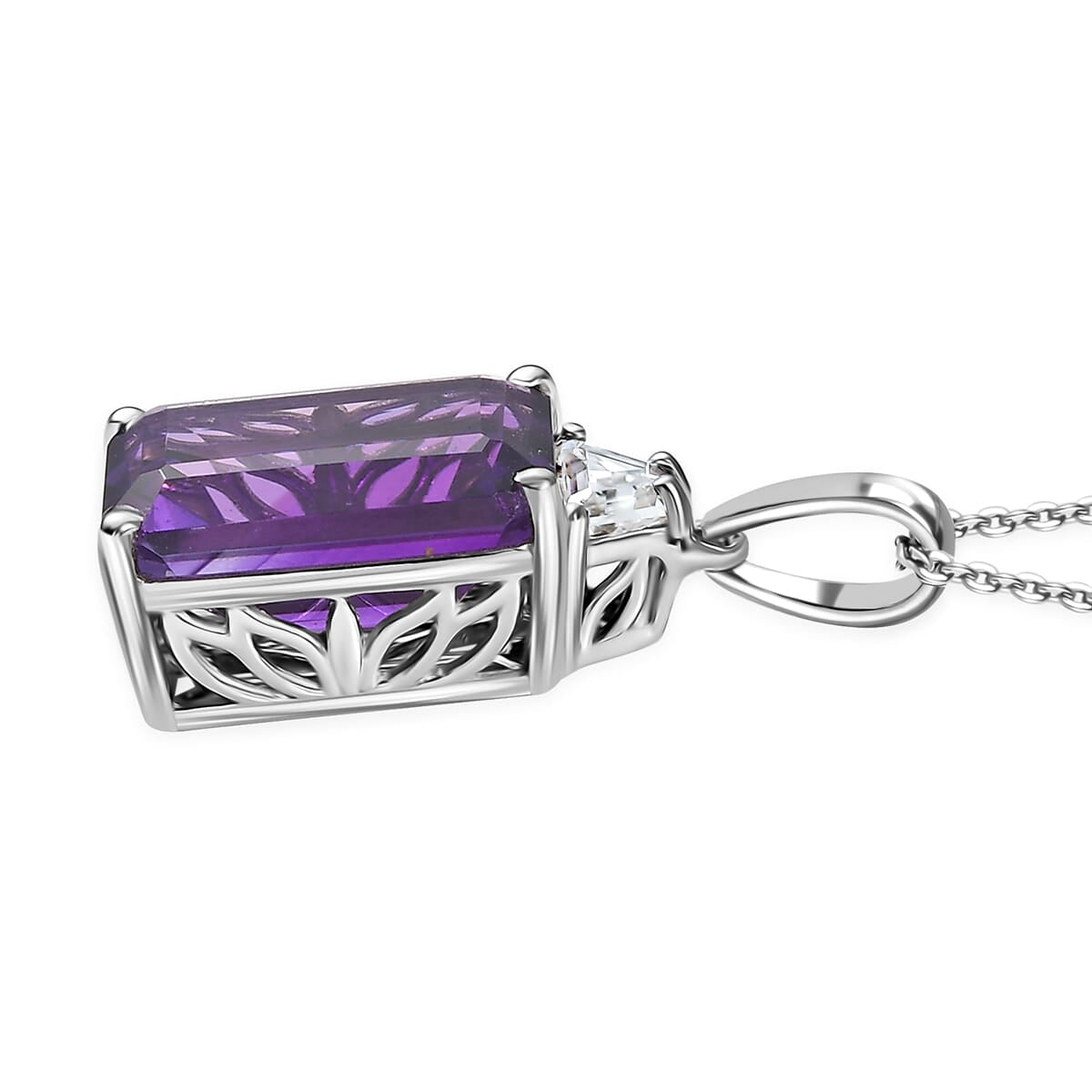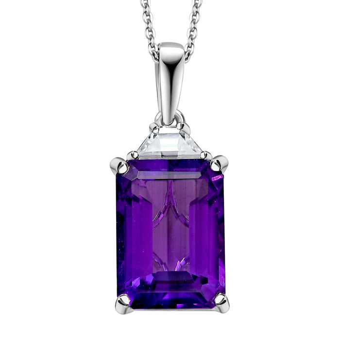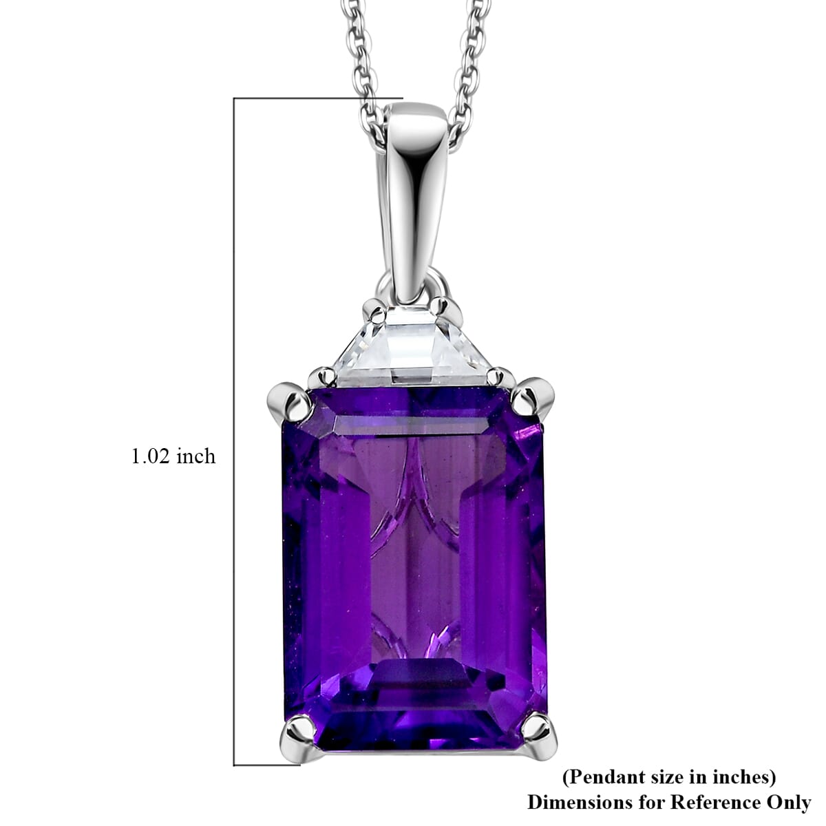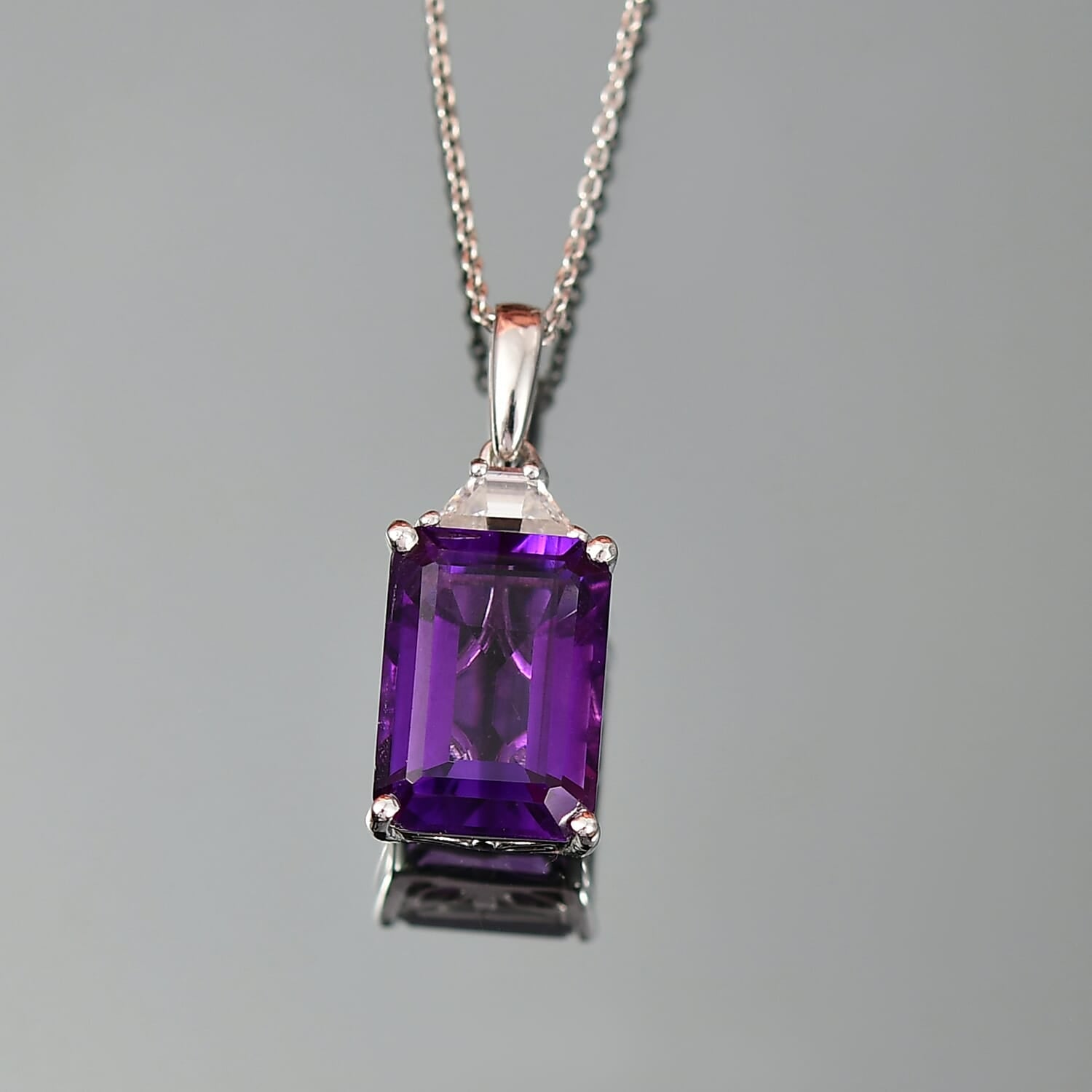 Discover the captivating allure of the DJOY AAA Lusaka Amethyst and Moissanite Pendant Necklace. Featuring a stunning 7.80 ctw of vibrant Lusaka Amethyst and sparkling Moissanite, this pendant necklace is crafted in rhodium over sterling silver for a luxurious and durable finish. With its rich purple hue and brilliant sparkle, this necklace is designed to illuminate your natural beauty while making a bold statement of sophistication.