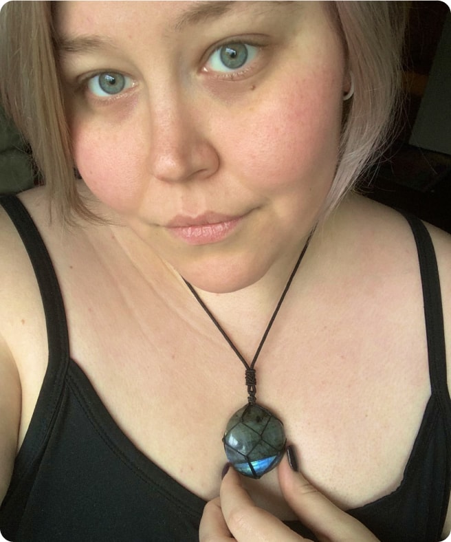 This necklace exceeded my expectations. The labradorite’s colors are mesmerizing, and it gives me a sense of balance and strength throughout the day.