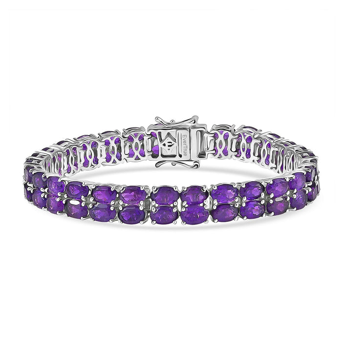 Infuse your style with both beauty and healing energy with the EverTrue African Amethyst Two-Row Carpet Bracelet. This bracelet combines elegant sparkle with the calming and protective properties of Amethyst. The platinum-bonded setting ensures a sleek, luxurious finish, while the two-row carpet design allows the rich Amethyst stones to shine. It’s the perfect addition to any outfit, bringing a touch of radiance and peaceful energy.