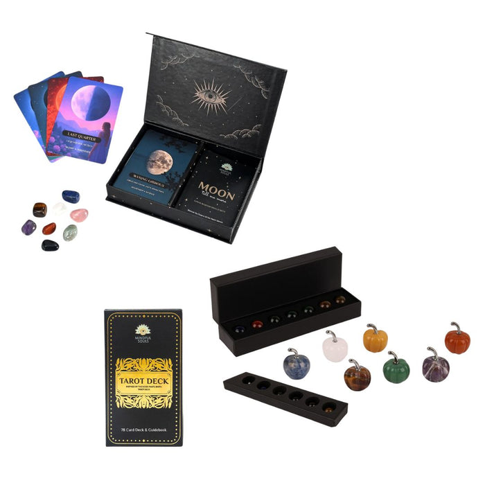 A complete lunar and cosmic system designed to help you align your actions with moon phases, gain emotional clarity, and deepen your intuition. Includes 49 oracle cards, a 100-page beginner-friendly guidebook, and 8 surprise crystals to guide your readings.