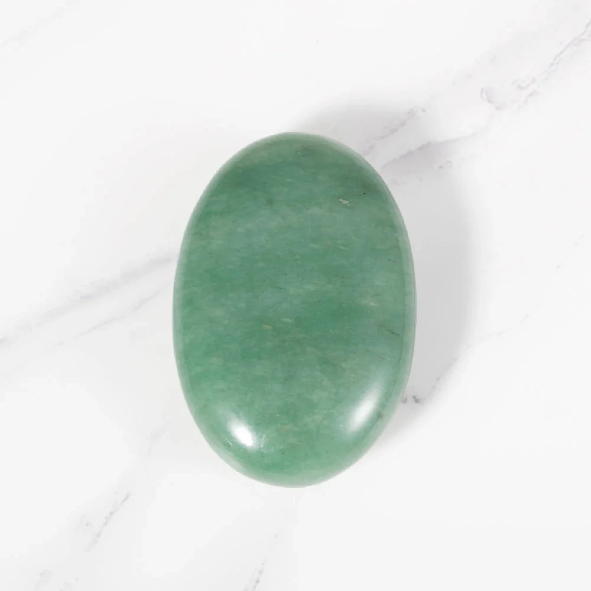 Green Aventurine Palm Stone - Your comfort companion! Perfectly shaped to fit your palm, this soothing stone brings healing energy wherever life takes you - like having a piece of peace in your pocket.