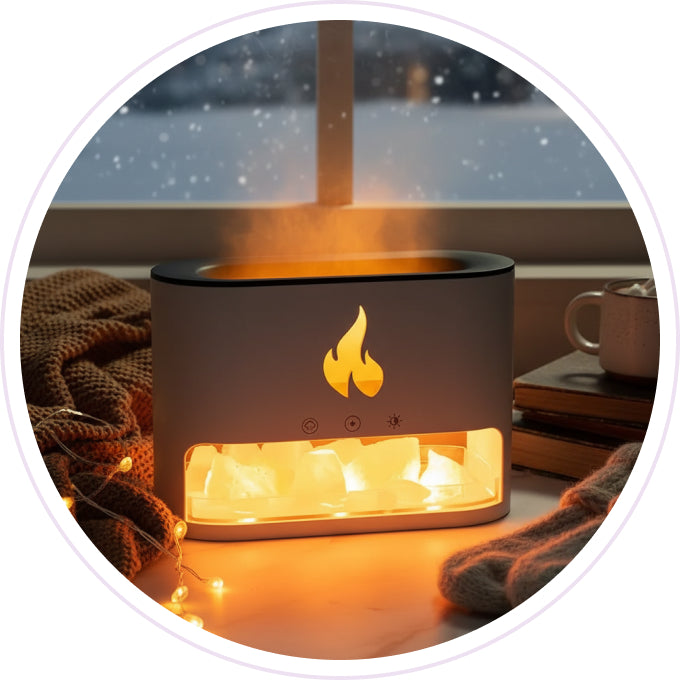 Place your lamp on your coffee table or living room shelf to create the perfect vibes for cozy family game nights, holiday movie marathons, or a hot chocolate and a chat with your partner. The warm glow and gentle mist make every winter evening feel a little softer.