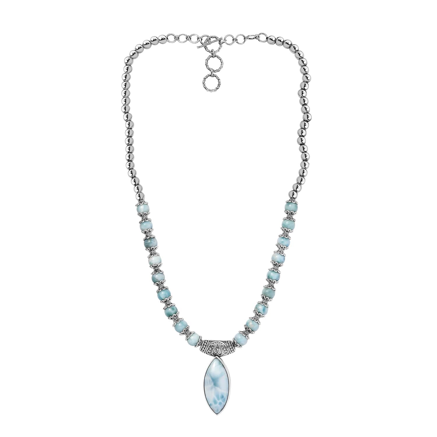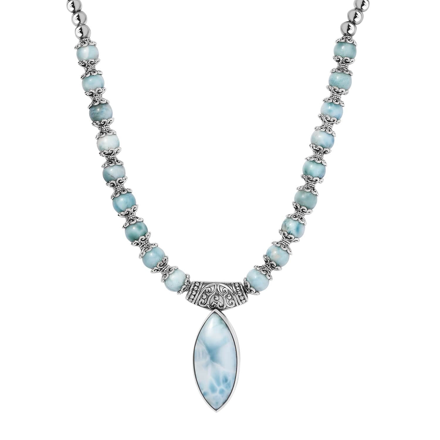 Larimar Bead Accents: Create a harmonious flow of calming energy throughout the piece.