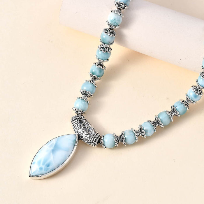 Immerse yourself in the tranquil energy of the Caribbean Sea with our exquisite Larimar Necklace.