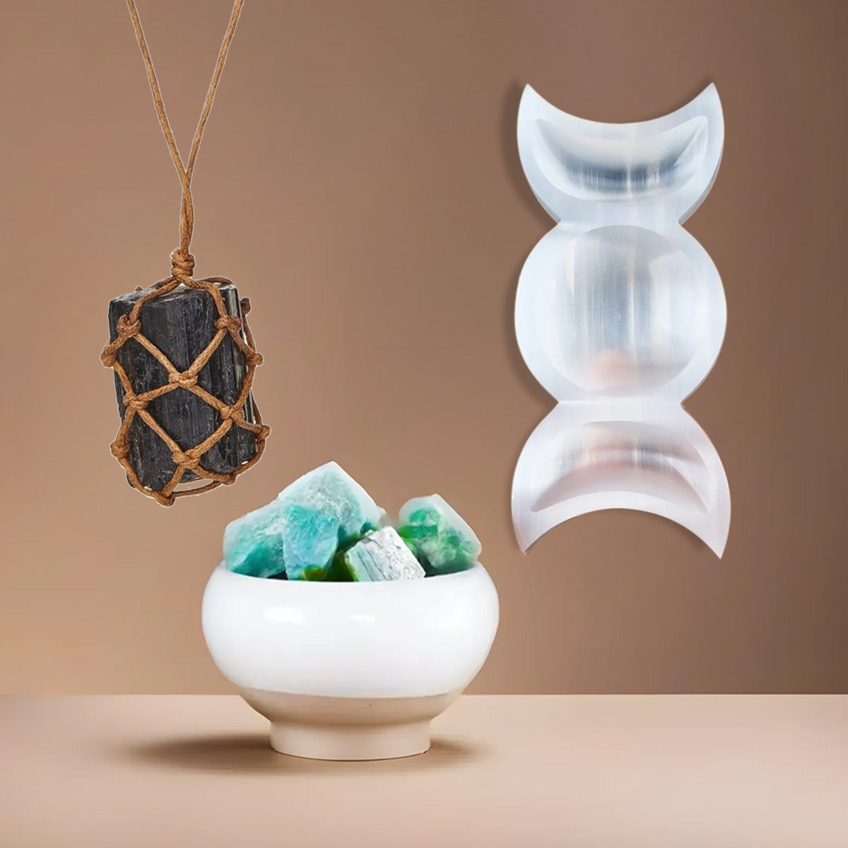 Moon Divination Selenite Crystal Bowl - Made with natural Selenite, which is known to cleanse and purify energy, this bowl is a powerful tool for spiritual clarity, peace, and inspiration.