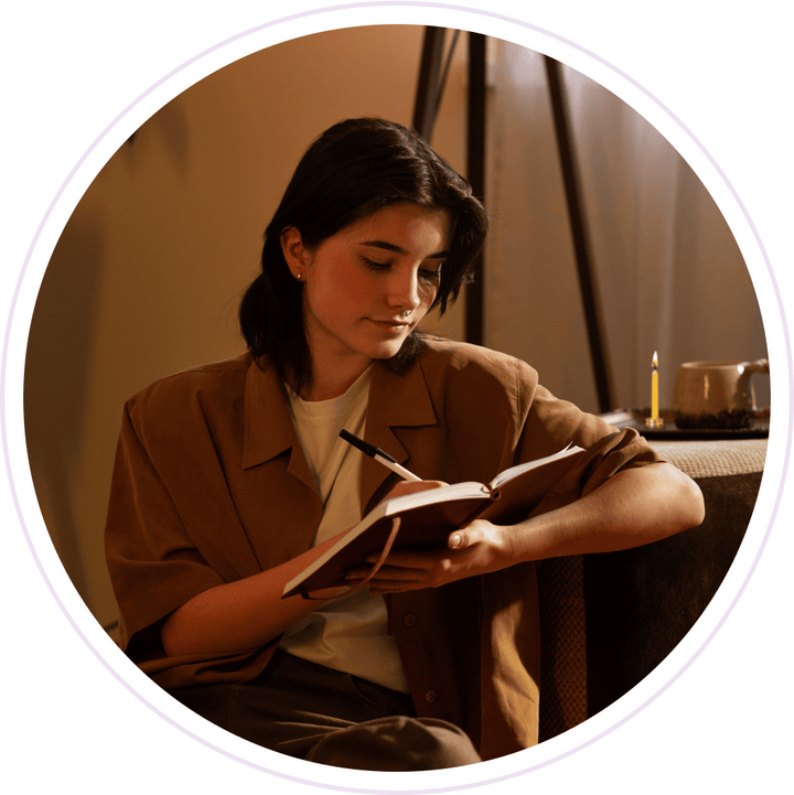 As your candle burns, let its gentle flame calm your mind and guide your breath. Use the included prompts to explore your thoughts and feelings.