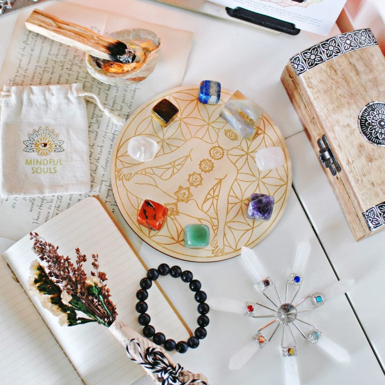 Mindful Box is a subscription service that delivers a curated selection of self-care and spiritual tools to your doorstep every month. Each box contains 6-8 genuine, handpicked items, worth over $100, including: