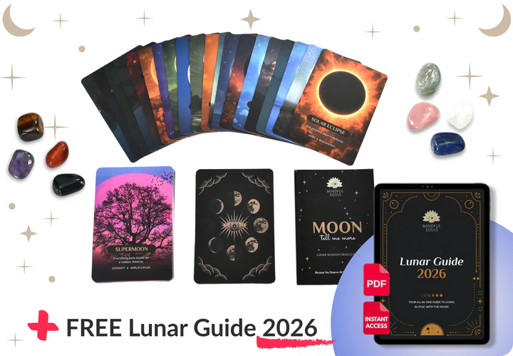 Crystal pairings, rituals, spreads, and detailed card meanings written by our team of astrologers and spiritual experts. Perfect even if you've never worked with oracle cards before. - 8 Surprise Crystals Inside A little gift from us—8 natural crystals to support every moon phase! Each one was handpicked to help you stay clear, grounded, and connected through it all.