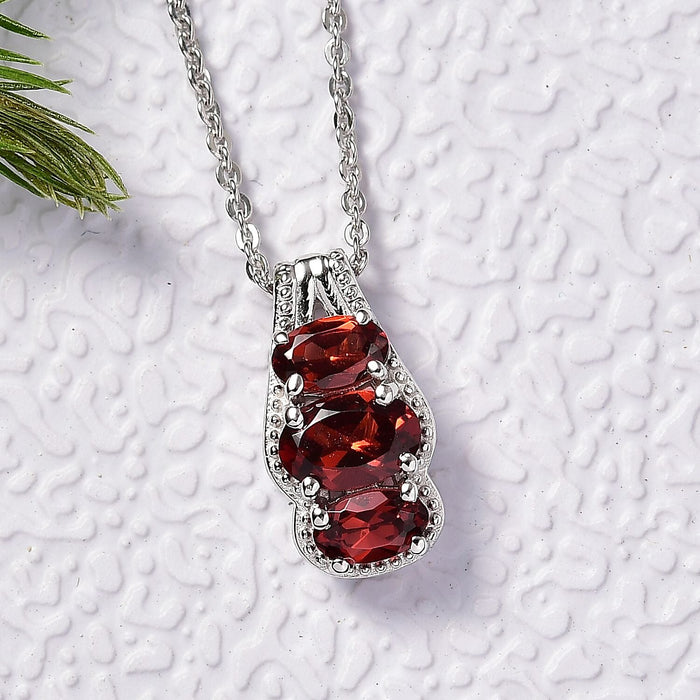 Infuse your look with timeless elegance and energy with the Mozambique Garnet Pendant Necklace. This stunning piece features three oval-cut Mozambique garnets, known for their deep red hues that symbolize passion, vitality, and emotional healing. Set in rhodium-plated 925 sterling silver, this necklace is the perfect accessory to add refinement and a touch of cosmic energy to any outfit. Whether you’re dressing up for a special occasion or looking to elevate your everyday style, this pendant serves as a meaningful and striking addition to your jewelry collection.