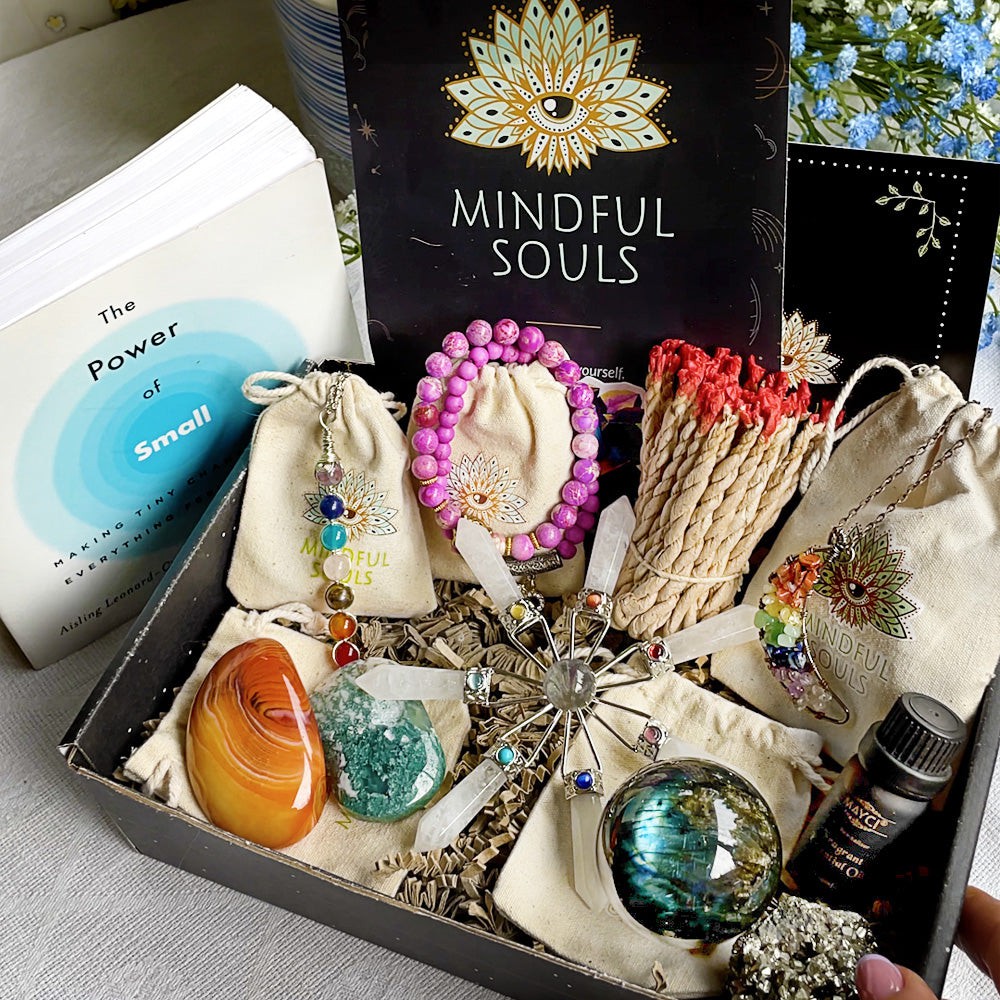 Each of our boxes brings you a monthly selection of 100% natural, ethically sourced gems and mindfulness tools, handpicked by professionals to meet your needs.