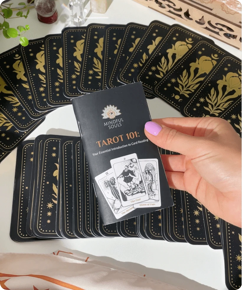 Discover the world of Tarot with our Comprehensive 78-Card Deck, inspired by the classic Rider-Waite-Smith system and given a unique Mindful Souls twist. Paired with a Tarot 101 Guidebook, this kit provides everything you need to understand card meanings, spreads, and more. Perfect for beginners, the clear explanations and simple spreads ensure a smooth start to your Tarot journey, while the deck’s versatility makes it ideal for Mindful Practice—whether for meditation, reflection, or readings for others. Dive into self-discovery and connect with your inner wisdom.