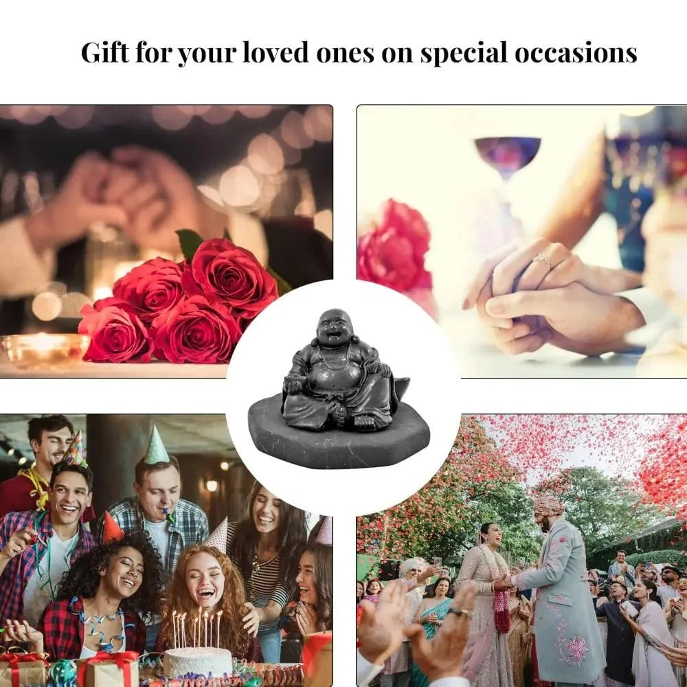 This Natural Shungite Hotei doesn't just sit there grinning—it actively works to clear the energetic dust that dims your natural joy. We combined the ancient symbol of happiness with rare Shungite—a powerful stone known for its protective properties.