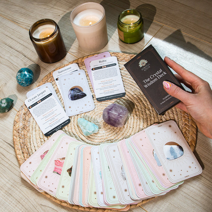 Start with the Crystal Wisdom Deck to check in with yourself. The crystal you pull reveals what your body and emotions are calling for: calm, focus, courage, or self-love.