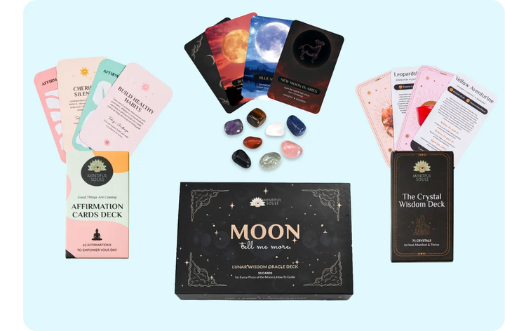 Finally, use the Moon Oracle Deck to align your next steps. Each card connects to a moon phase, helping you sense whether it’s time to rest, move forward, or simply trust the flow.