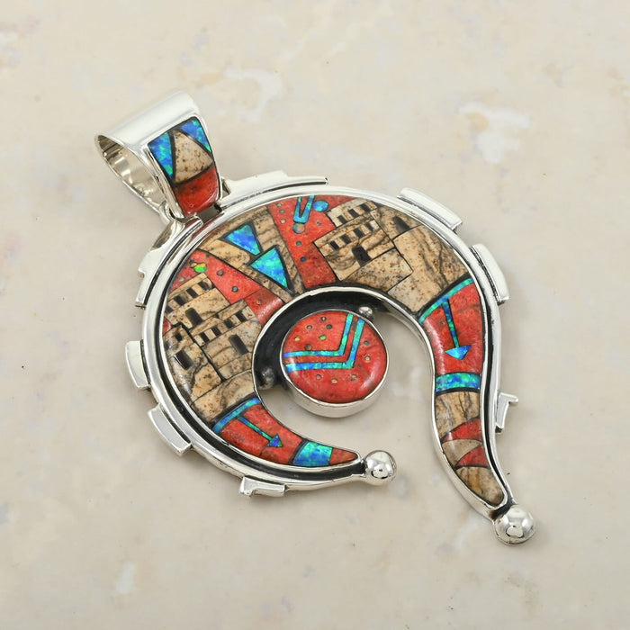 This pendant serves as a powerful symbol of Southwestern culture, with each gemstone combination offering a distinctive look. Its bold design and vibrant stones make it a timeless statement piece, whether for a special occasion or as a standout addition to your everyday wardrobe.