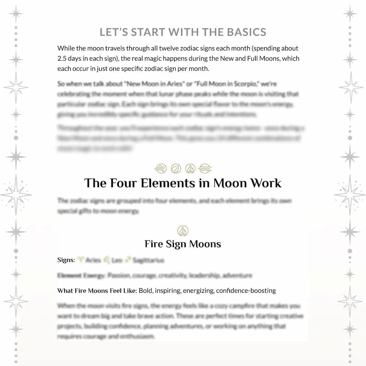 Explore 6 in-depth chapters that reveal how to use the moon’s phases, zodiac signs, and ancient wisdom to manifest, release, and reconnect with yourself.