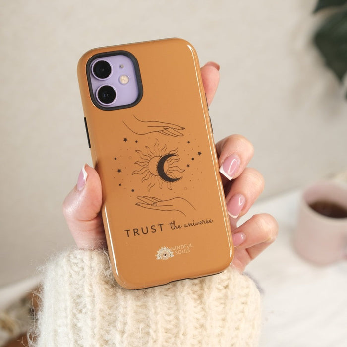 The ‘Trust The Universe’ Phone Case was carefully designed with high-quality and durable materials to protect your mobile device while also adding a blissful touch of spiritual mindfulness to it!
