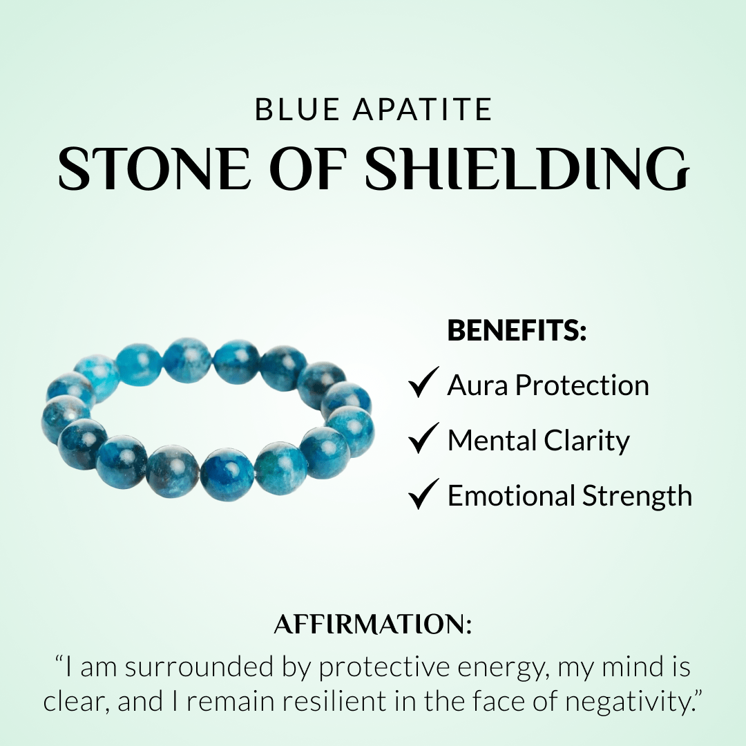 Made with Blue Apatite stones, this bracelet not only shines with a gorgeous colored pattern but also carries a strong spiritual symbolism. Apatite is a protective stone known to fuel your passion, inspiring new projects, ideas, and opportunities.