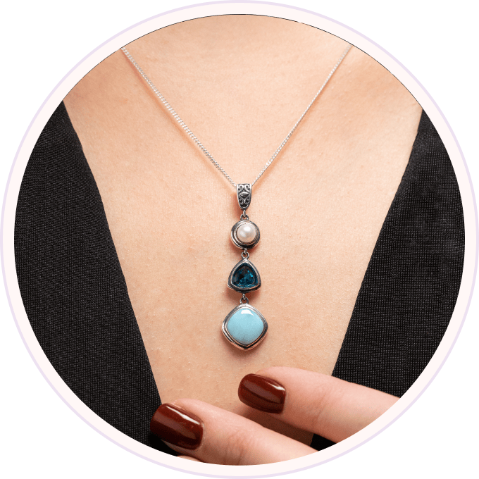 "Wearing this necklace feels like I’m carrying a little piece of paradise with me. The Larimar stone reminds me of the ocean, and it instantly makes me feel calm and refreshed."