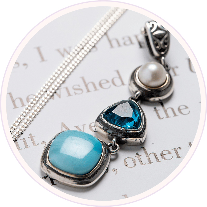 "This necklace is even more stunning in person! The Larimar stone has such a calming energy, and I feel so confident whenever I wear it."
